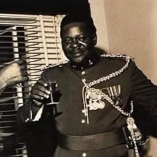 Lieutenant Colonel Francis Adekunle Fajuyi (1926 – 29 July 1966) was a distinguished Nigerian soldier, decorated war hero and statesman whose courage and sense of duty earned him a lasting place in Nigeria’s history. This photograph captures him in his military uniform, holding a drink and seemingly toasting with another individual, a rare glimpse of the man behind the uniform.